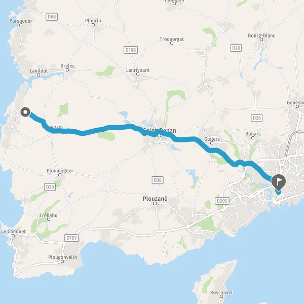 Au rond-point, prendre la 2ème sortie sur D5 (Route de Saint-Renan) et continuer sur 3,7 kilomètres