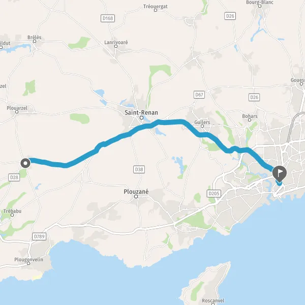 Prendre à droite et rejoindre D5 (Route de Saint-Renan). Continuer sur 3,8 kilomètres