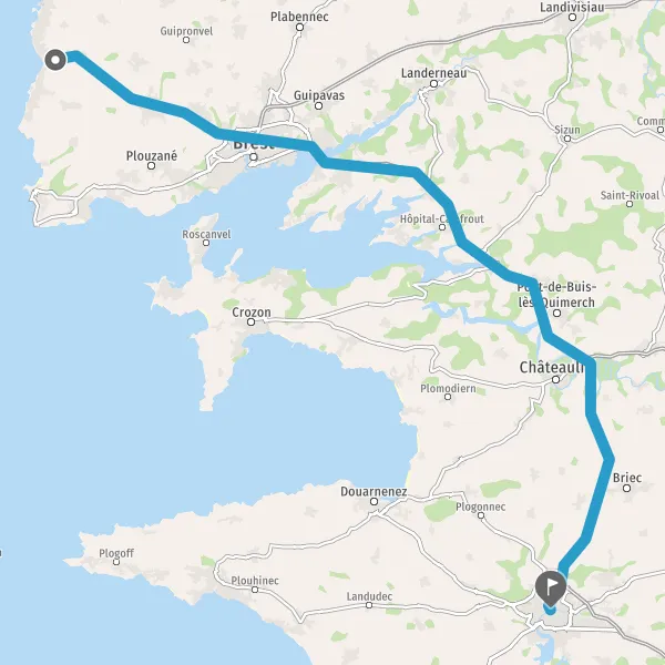 Au rond-point, prendre la 2ème sortie sur D233 (Rue de Quimper) et continuer sur 1,3 kilomètre