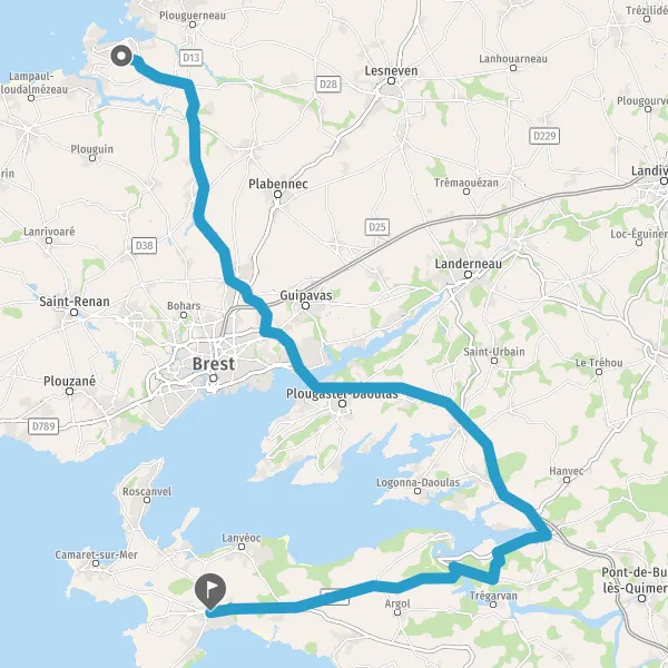 Tourner légèrement à droite sur D791 (Route de Pen ar Prat) et continuer sur 8,6 kilomètres
