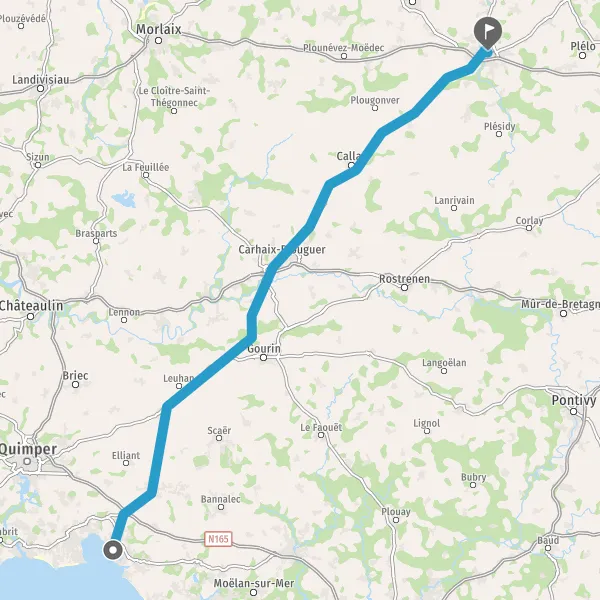 Tourner légèrement à gauche sur Rue de Callac et continuer sur 1 kilomètre