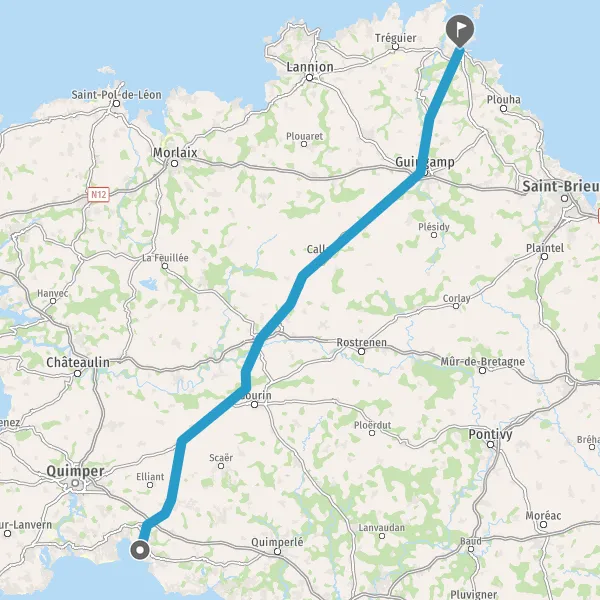 Tourner légèrement à gauche sur Rue de Callac et continuer sur 1 kilomètre