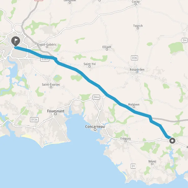 Au rond-point, prendre la 2ème sortie sur Vieille Route de Rosporden et continuer sur 600 mètres