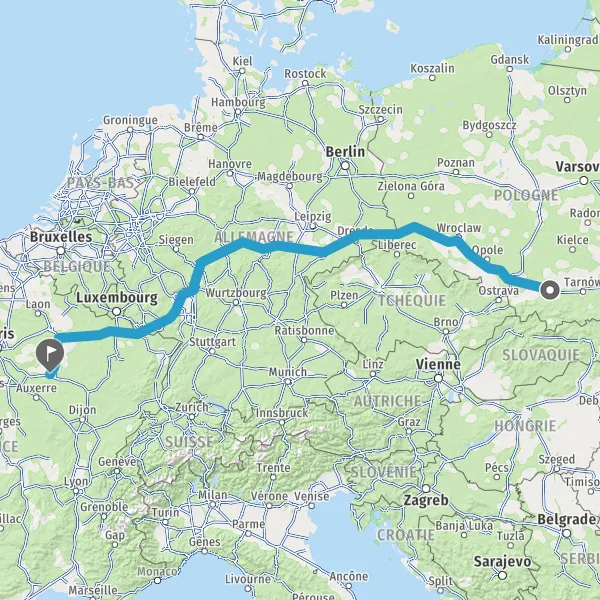 Prendre à droite et rejoindre A4. Continuer sur 159 kilomètres
