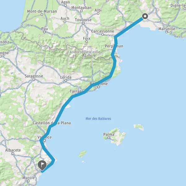 Prendre à droite et rejoindre A9 E15 E80. Continuer sur 32 kilomètres