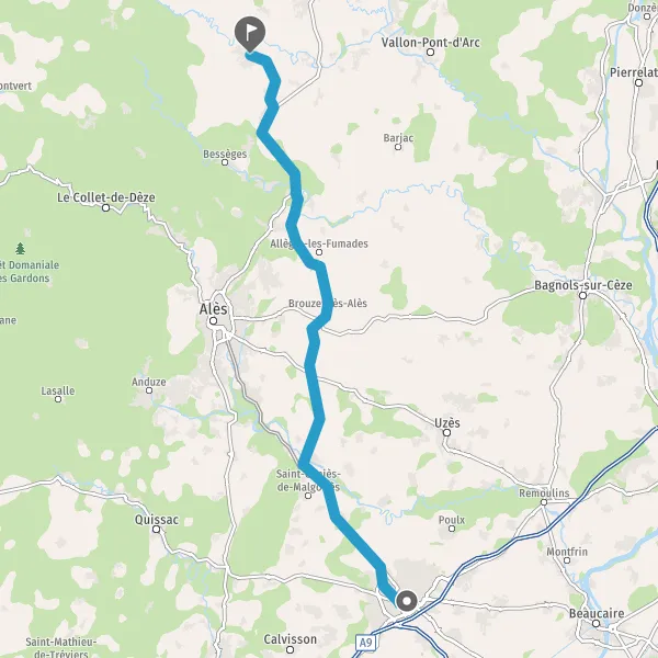 Au rond-point, prendre la 2ème sortie sur D904 (Route d'Alès) et continuer sur 3,5 kilomètres