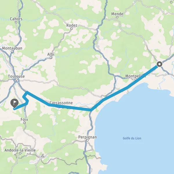 Prendre à droite et rejoindre A9 E15 E80. Continuer sur 32 kilomètres