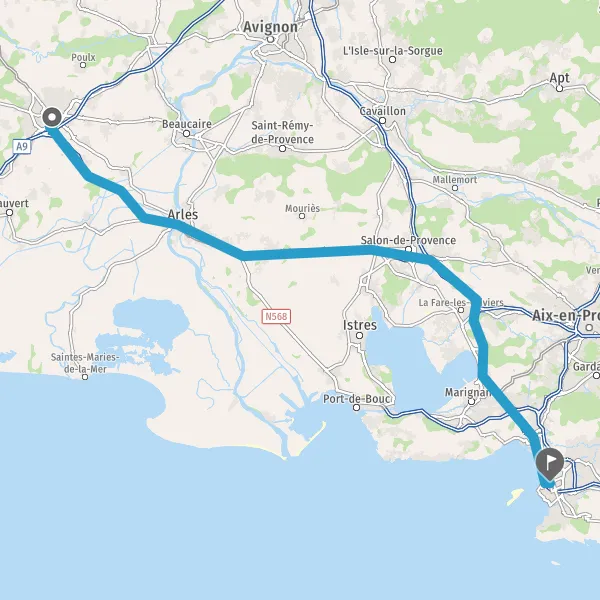 Avec le mode voiture, vous pouvez configurer vos options (type de véhicule, autoroute ou non, péage ou non, distance la plus courte), tout en ayant accès aux infos de circulation grâce à notre service d'info-trafic en temps réel. Ainsi faites des économies sur le coût ou la durée de votre voyage, en trouvant le trajet Nîmes Marseille adapté à vos besoins.