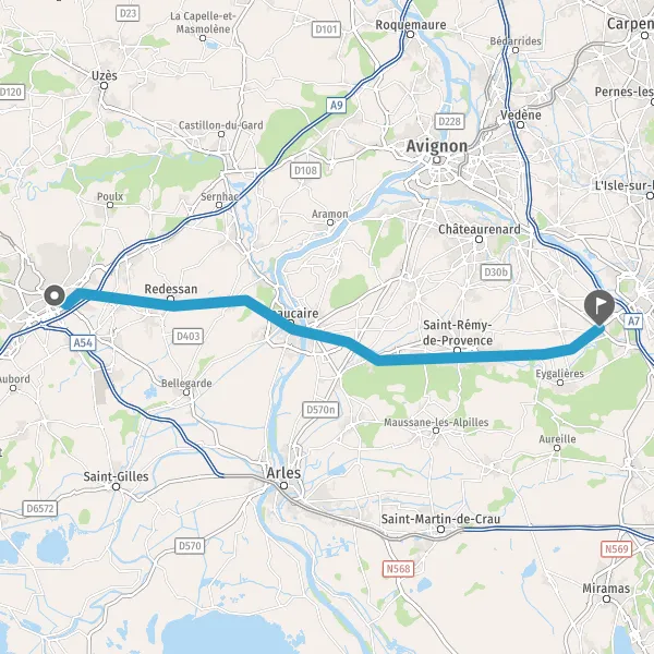 Au rond-point, prendre la 2ème sortie sur D99 (Avenue de Tarascon) et continuer sur 450 mètres