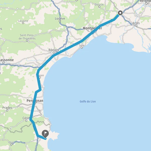 Prendre à droite et rejoindre A9 E15 E80. Continuer sur 32 kilomètres