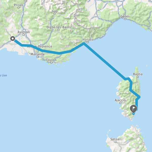 Prendre à droite et rejoindre T10 (Route de Bonifacio). Continuer sur 15 kilomètres