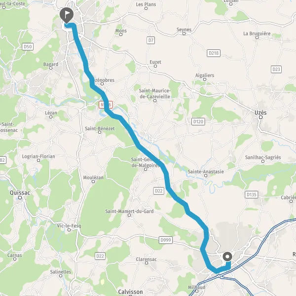 Au rond-point, prendre la 2ème sortie sur N106 (Route de Nîmes) et continuer sur 160 mètres