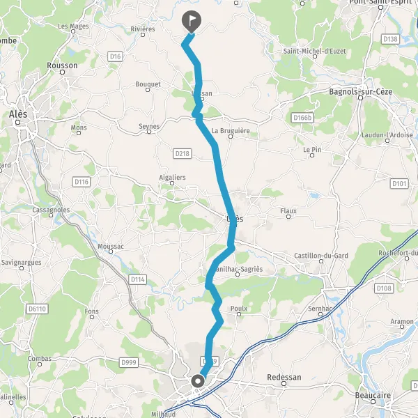 Tourner légèrement à droite sur D979 (Route d'Uzès) et continuer sur 17 kilomètres