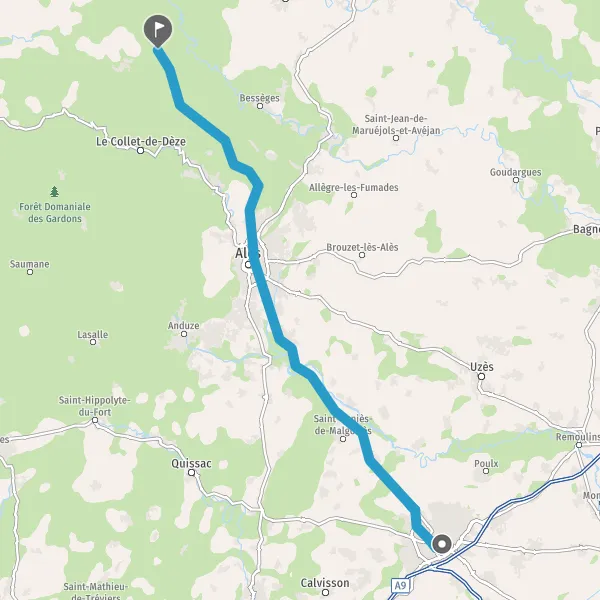 Au rond-point, prendre la 2ème sortie sur D936 (Route de Nîmes) et continuer sur 450 mètres