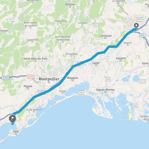 Prendre à droite et rejoindre Pénétrante de Sète. Continuer sur 160 mètres