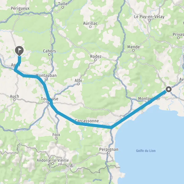 Prendre à droite et rejoindre A9 E15 E80. Continuer sur 32 kilomètres