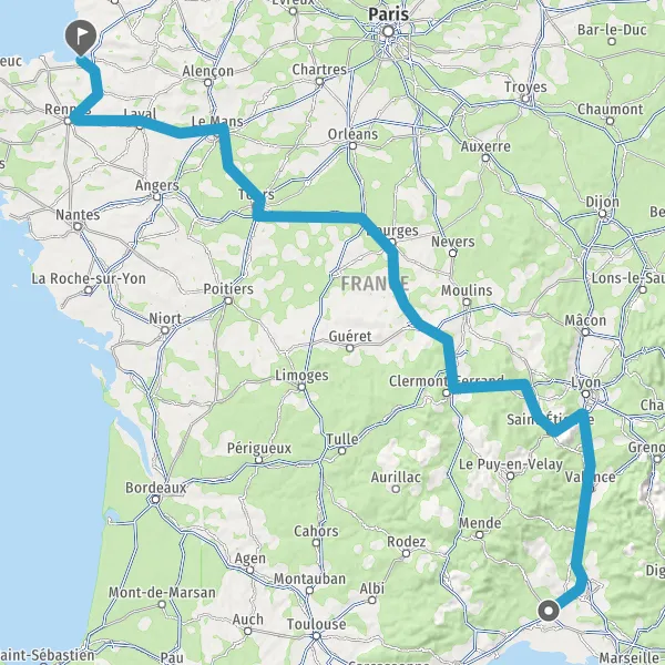 Prendre à droite et rejoindre A85 E604. Continuer sur 105 kilomètres