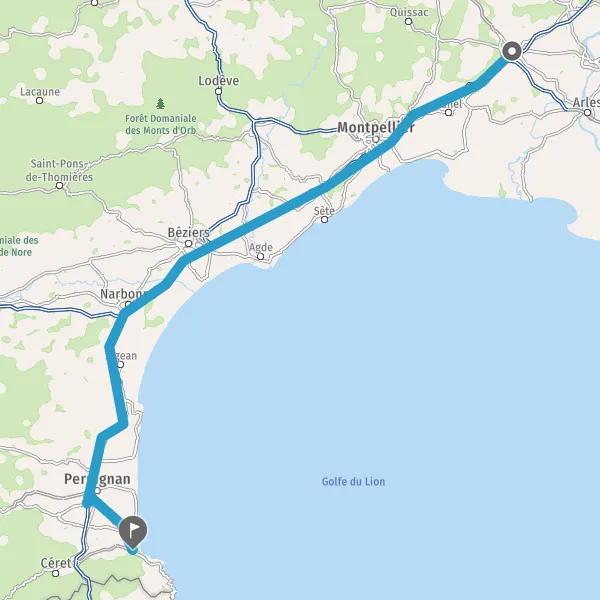 Prendre à droite et rejoindre A9 E15 E80. Continuer sur 32 kilomètres