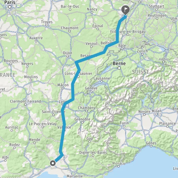 Prendre à droite et rejoindre A36 E60. Continuer sur 185 kilomètres