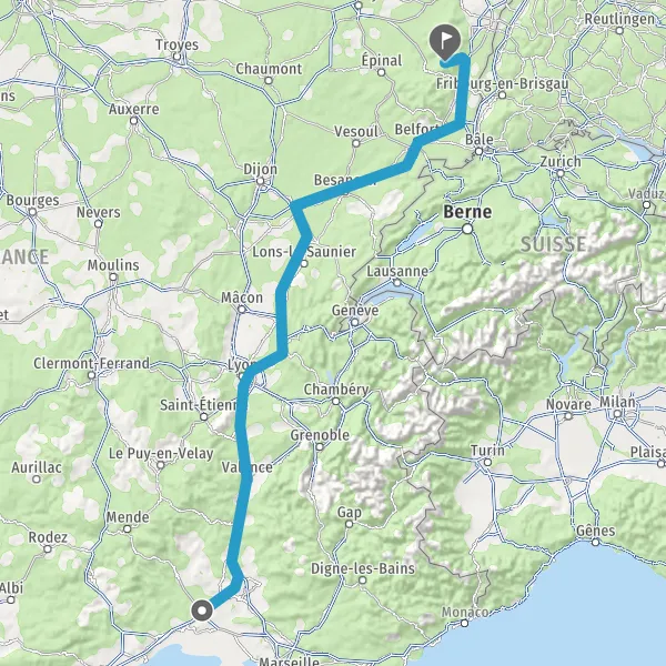 Prendre à droite et rejoindre A36 E60. Continuer sur 125 kilomètres