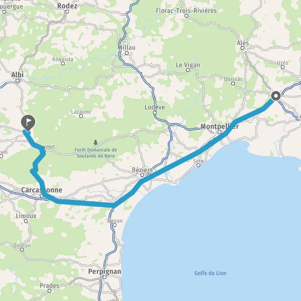 Au rond-point, prendre la 2ème sortie sur D118 (Avenue de la Montagne Noire) et continuer sur 36 kilomètres