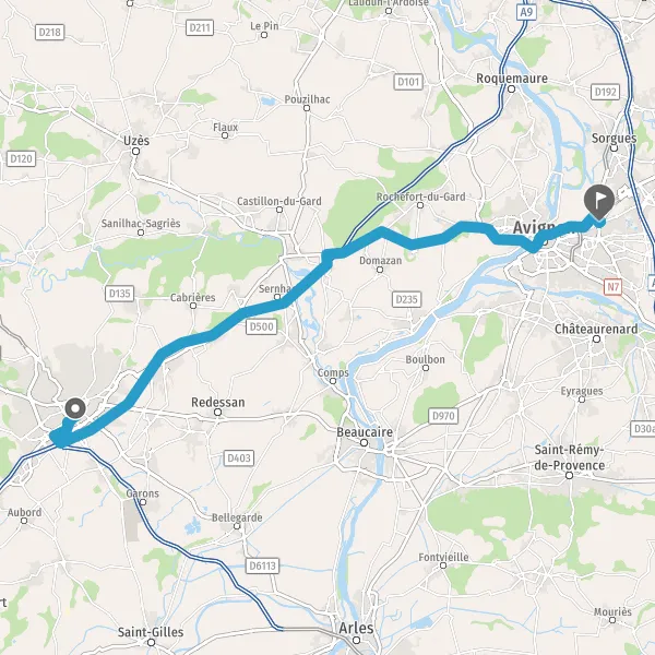Au rond-point, prendre la 2ème sortie sur N100 (Route de Nîmes) et continuer sur 1 kilomètre