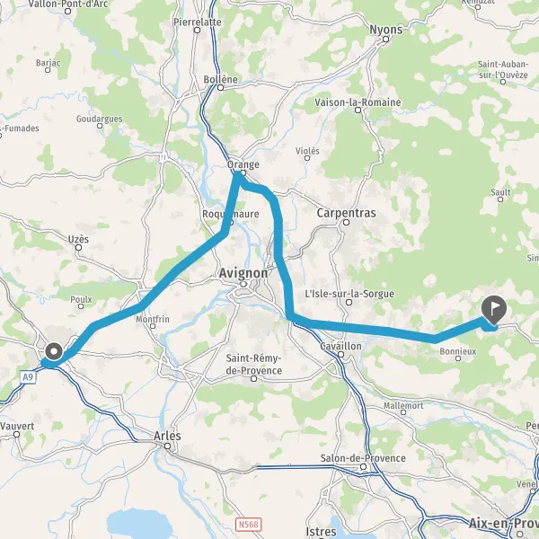 Au rond-point, prendre la 3ème sortie sur D900 (Route d'Avignon) et continuer sur 9,3 kilomètres