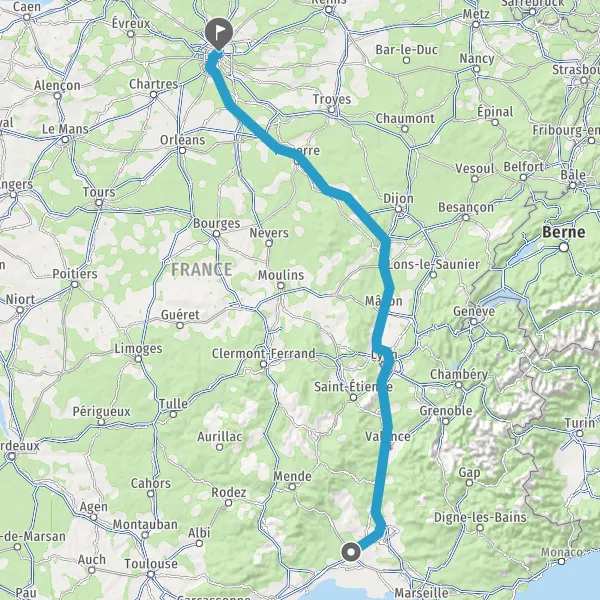 Prendre à droite et rejoindre A6. Continuer sur 294 kilomètres