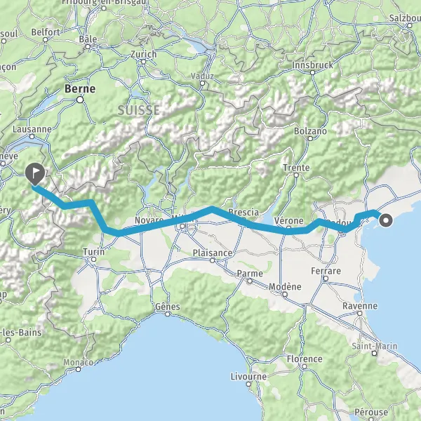 Continuer E70 (Passante di Mestre) sur 154 kilomètres