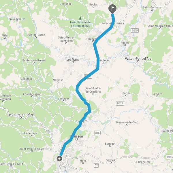 Au rond-point, prendre la 2ème sortie sur D104 (Route d'Aubenas) et continuer sur 9,1 kilomètres