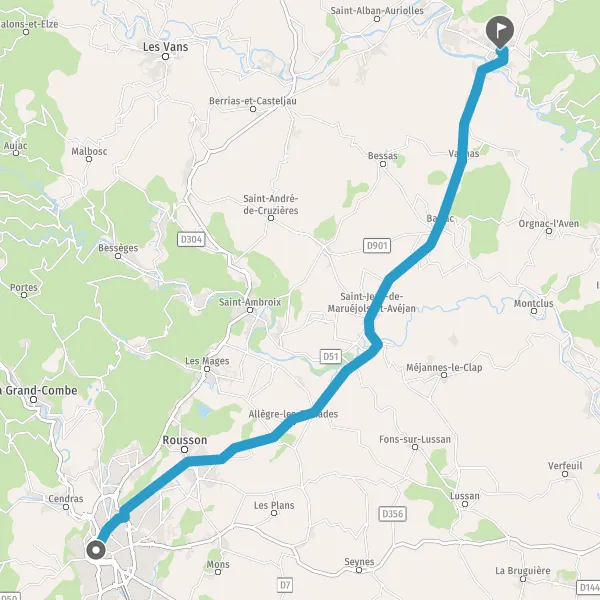 Au rond-point, prendre la 2ème sortie sur D16 (Route de Salindres) et continuer sur 9,5 kilomètres