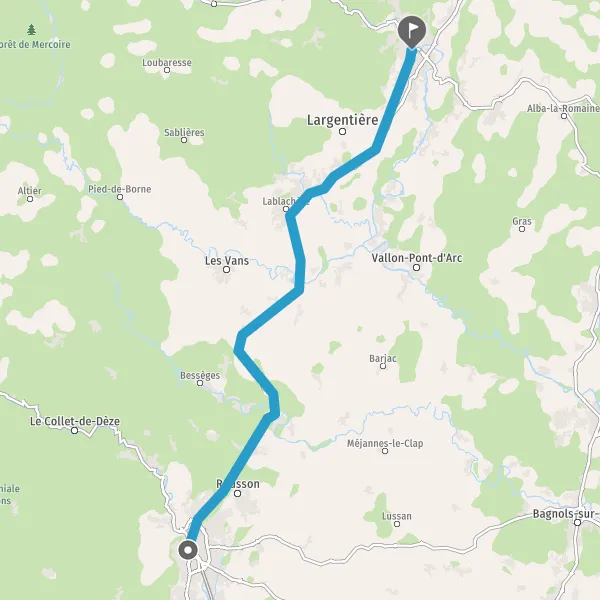 Au rond-point, prendre la 3ème sortie sur Route de la Chapelle-sous-Aubenas et continuer sur 3,5 kilomètres