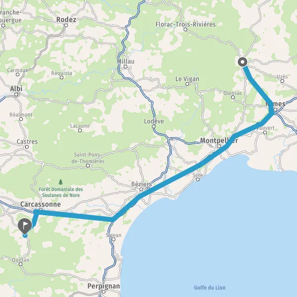 Prendre à droite et rejoindre A9 E15 E80. Continuer sur 32 kilomètres