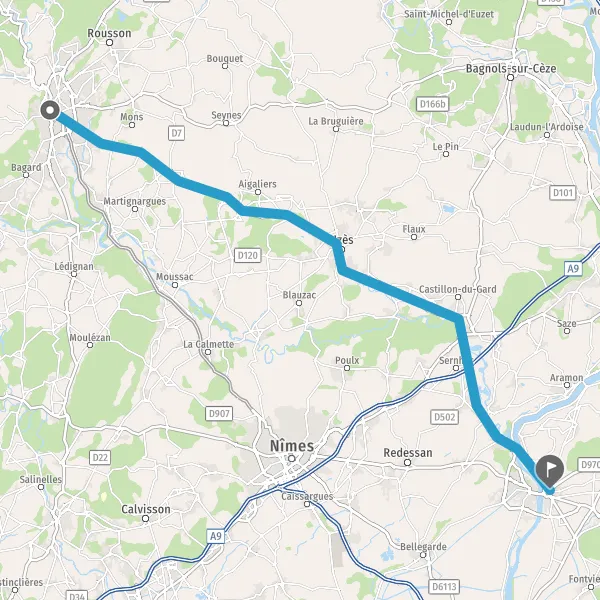 Au rond-point, prendre la 2ème sortie sur D981 (Route d'Uzès) et continuer sur 6,4 kilomètres