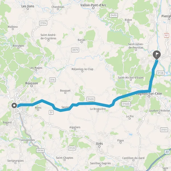 Tourner à droite sur D6 (Route d'Alès) et continuer sur 13 kilomètres