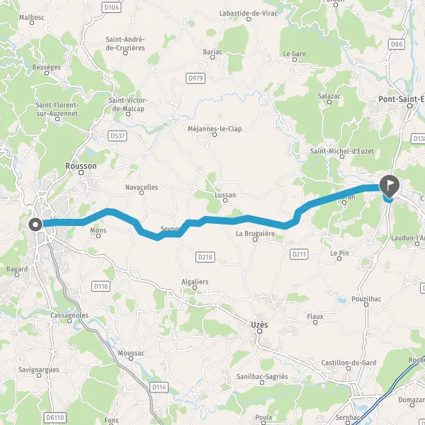 Tourner à droite sur D6 (Route d'Alès) et continuer sur 13 kilomètres
