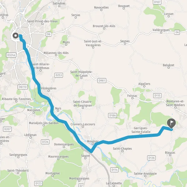 Au rond-point, prendre la 2ème sortie sur D981 (Route d'Uzès) et continuer sur 6,4 kilomètres