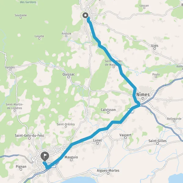 Prendre à droite et rejoindre A9 E15 E80. Continuer sur 32 kilomètres