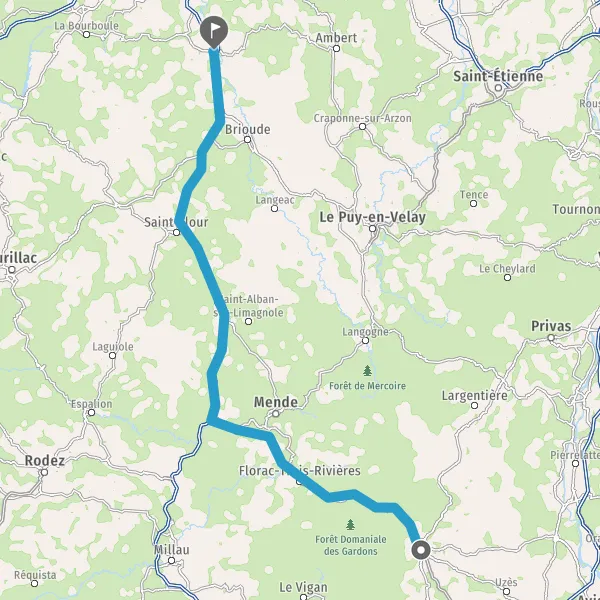 Au rond-point, prendre la 2ème sortie sur N106 (Route de Mende) et continuer sur 3,4 kilomètres