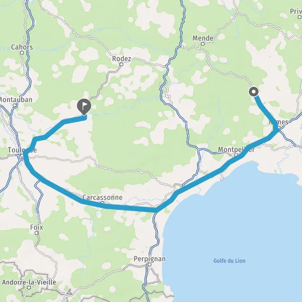 Prendre à droite et rejoindre A9 E15 E80. Continuer sur 32 kilomètres