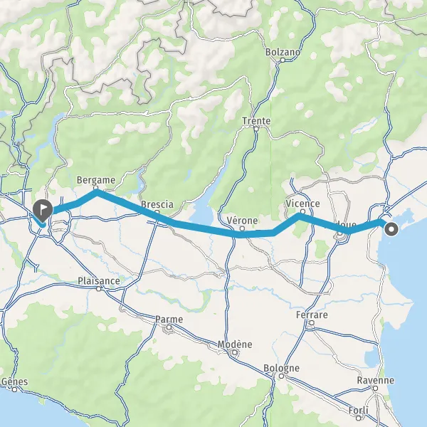 Tourner à droite sur Bretella Tronchetto et continuer sur 10 kilomètres