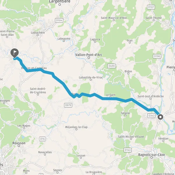 Tourner légèrement à droite sur D901 (Route de Païolive) et continuer sur 240 mètres