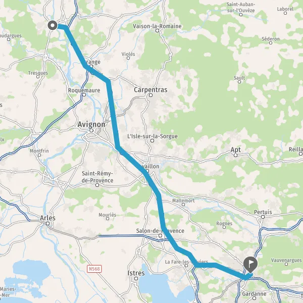 Avec le mode voiture, vous pouvez configurer vos options (type de véhicule, autoroute ou non, péage ou non, distance la plus courte), tout en ayant accès aux infos de circulation grâce à notre service d'info-trafic en temps réel. Ainsi faites des économies sur le coût ou la durée de votre voyage, en trouvant le trajet Pont-Saint-Esprit Aix-en-Provence adapté à vos besoins.