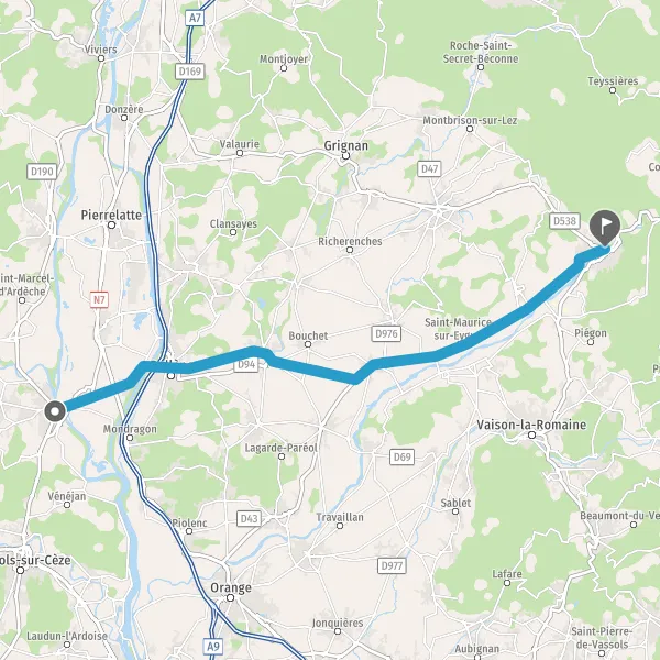 Au rond-point, prendre la 2ème sortie sur D94 (Route de Nyons) et continuer sur 6,6 kilomètres