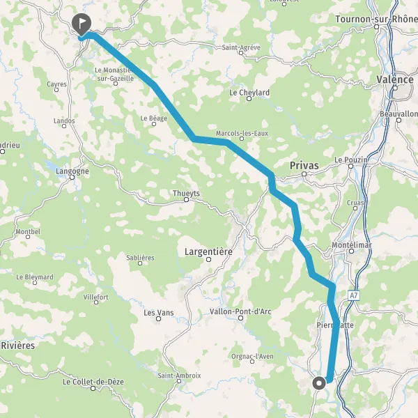 Tourner légèrement à gauche sur D122 (Route de Privas) et continuer sur 8,6 kilomètres