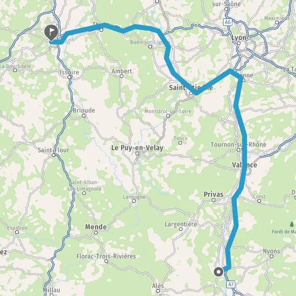Prendre à droite et rejoindre A72. Continuer sur 53 kilomètres