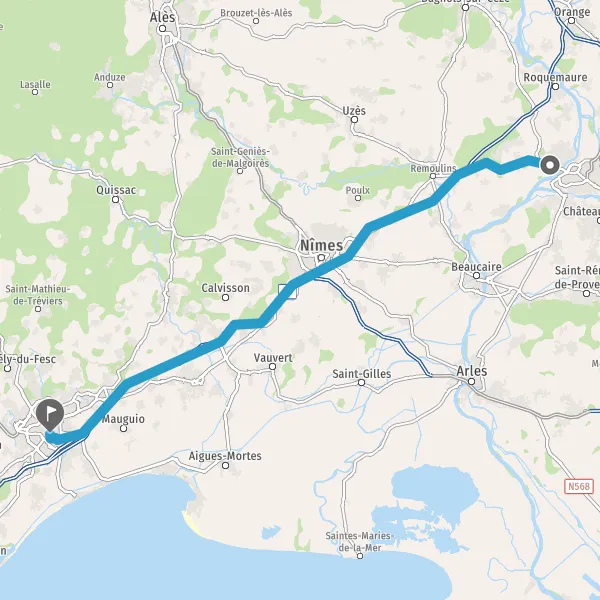 Tourner légèrement à droite sur N100 (Route Nationale de Montpellier à Avignon) et continuer sur 2,1 kilomètres