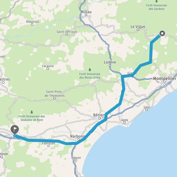 Prendre à droite et rejoindre A9 E15 E80. Continuer sur 86 kilomètres