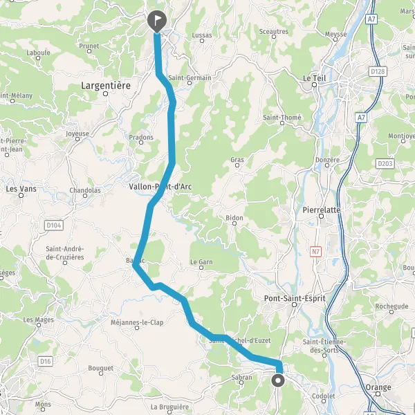 Tourner légèrement à droite sur D980 (Route de Barjac) et continuer sur 14 kilomètres