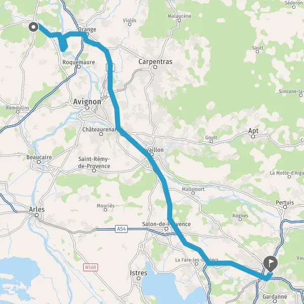 Au rond-point, prendre la 2ème sortie sur N580 D6580 (Route d'Avignon) et continuer sur 4,4 kilomètres